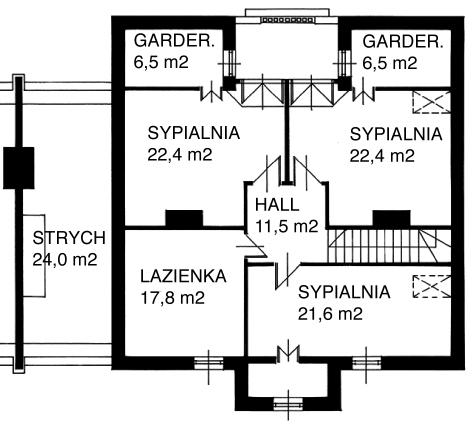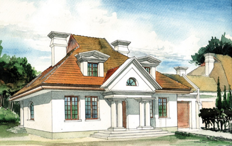 Budynek parterowy, niepodpiwniczony, z mieszkalnym poddaszem; warianty: wolnostojący i w zabudowie bliźniaczej